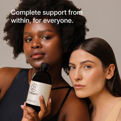 Integrating the advanced formula of 21Collagen Liquid Collagen into your regimen for a minimum of three months promises progressive and cumulative benefits for skin, joints, hair, nails and wound healing. These benefits stem from enhanced collagen production, which improves moisture retention, elasticity and antioxidant defenses, with the full effects manifesting as collagen levels increase throughout the body over time.