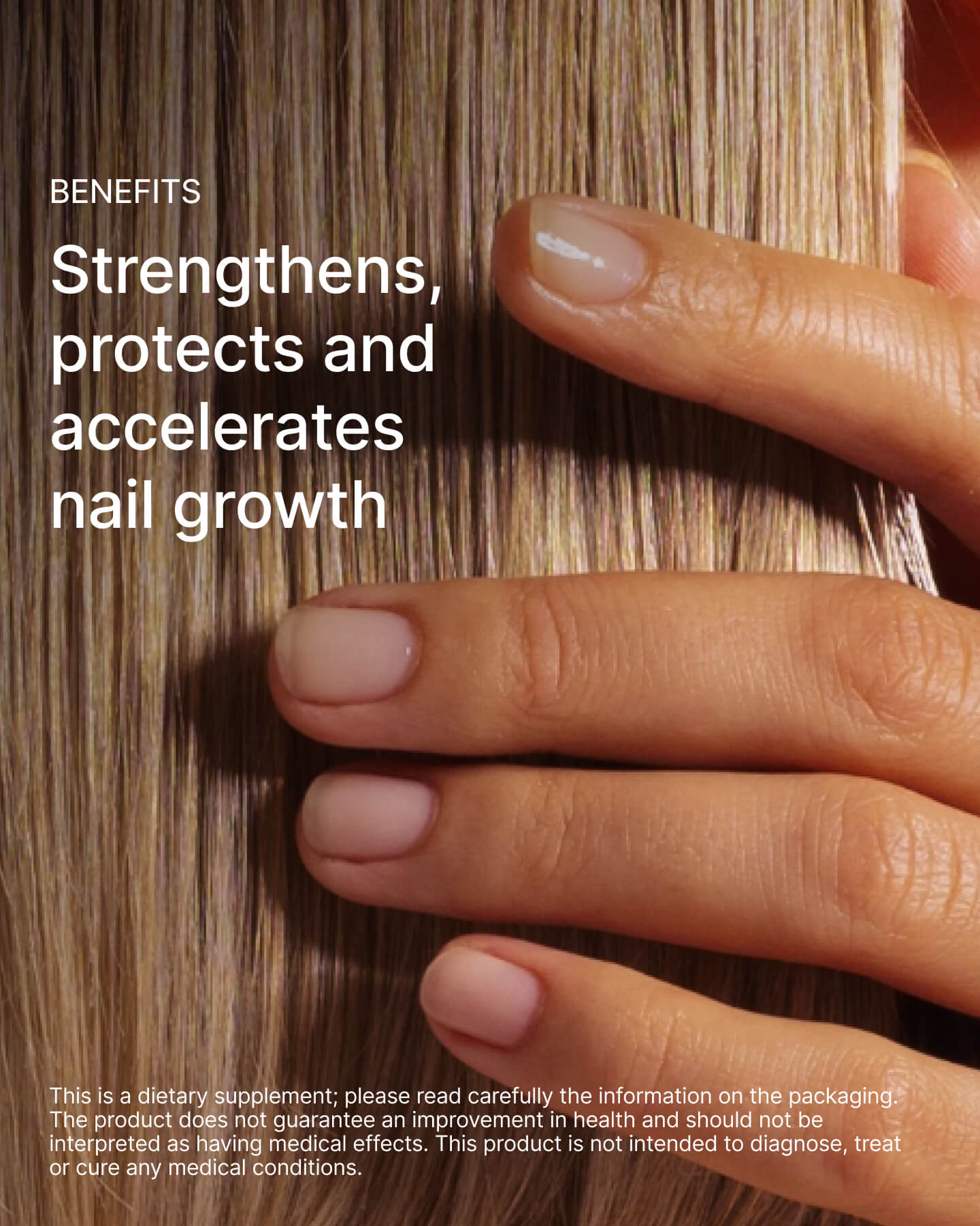 - Supporting the health of hair and nails, giving them strength and shine.