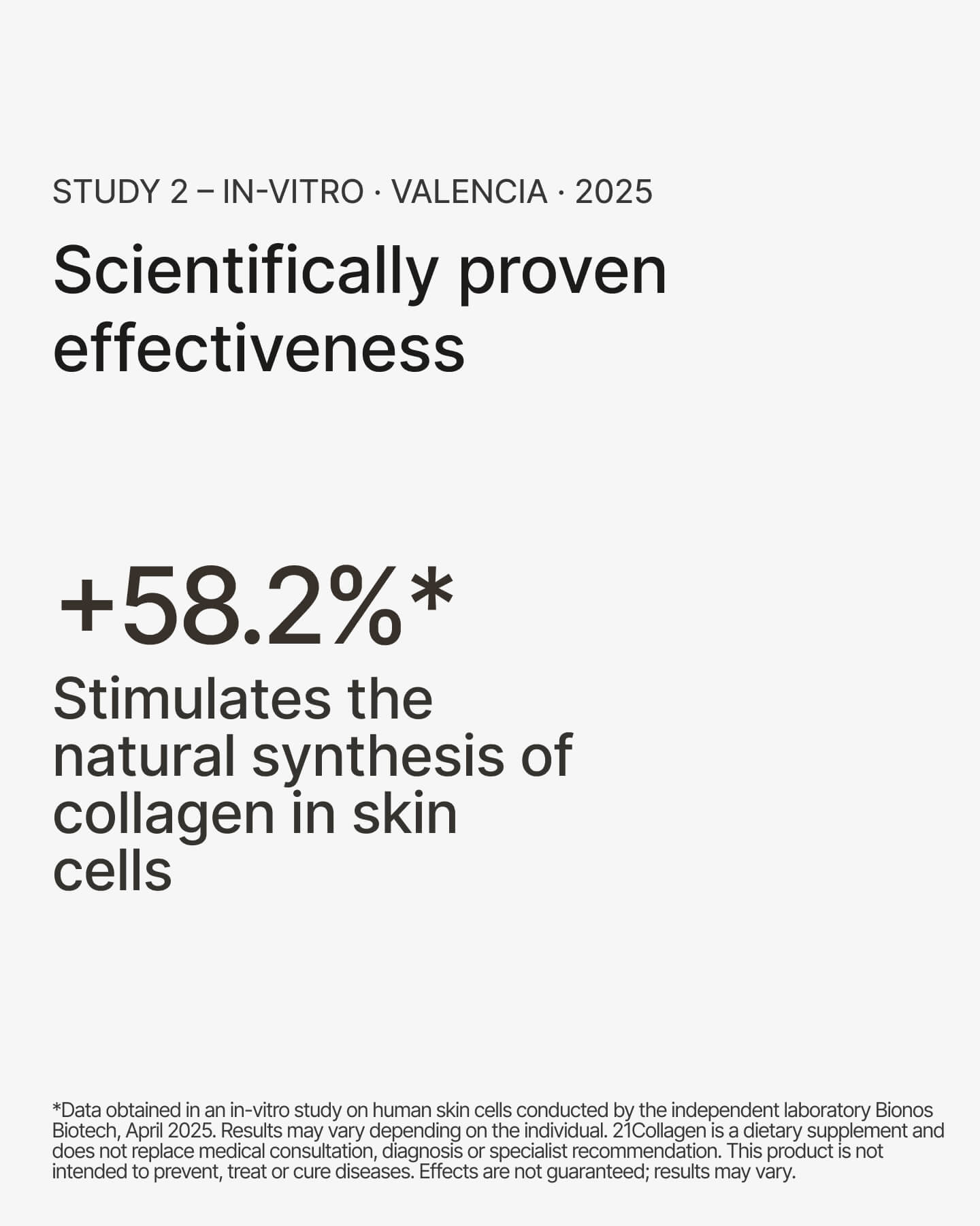 Liquid marine collagen from 21Collagen contains an extensive list of the highest quality ingredients, including collagen peptides, hyaluronic acid, vitamin C, vitamin B, zinc, etc. Each ingredient has been studied in the most prestigious laboratories in the world, and on the 21Collagen website you can find details about the demonstrated effects of each ingredient in the 21Collagen formula in the “Studies” section.