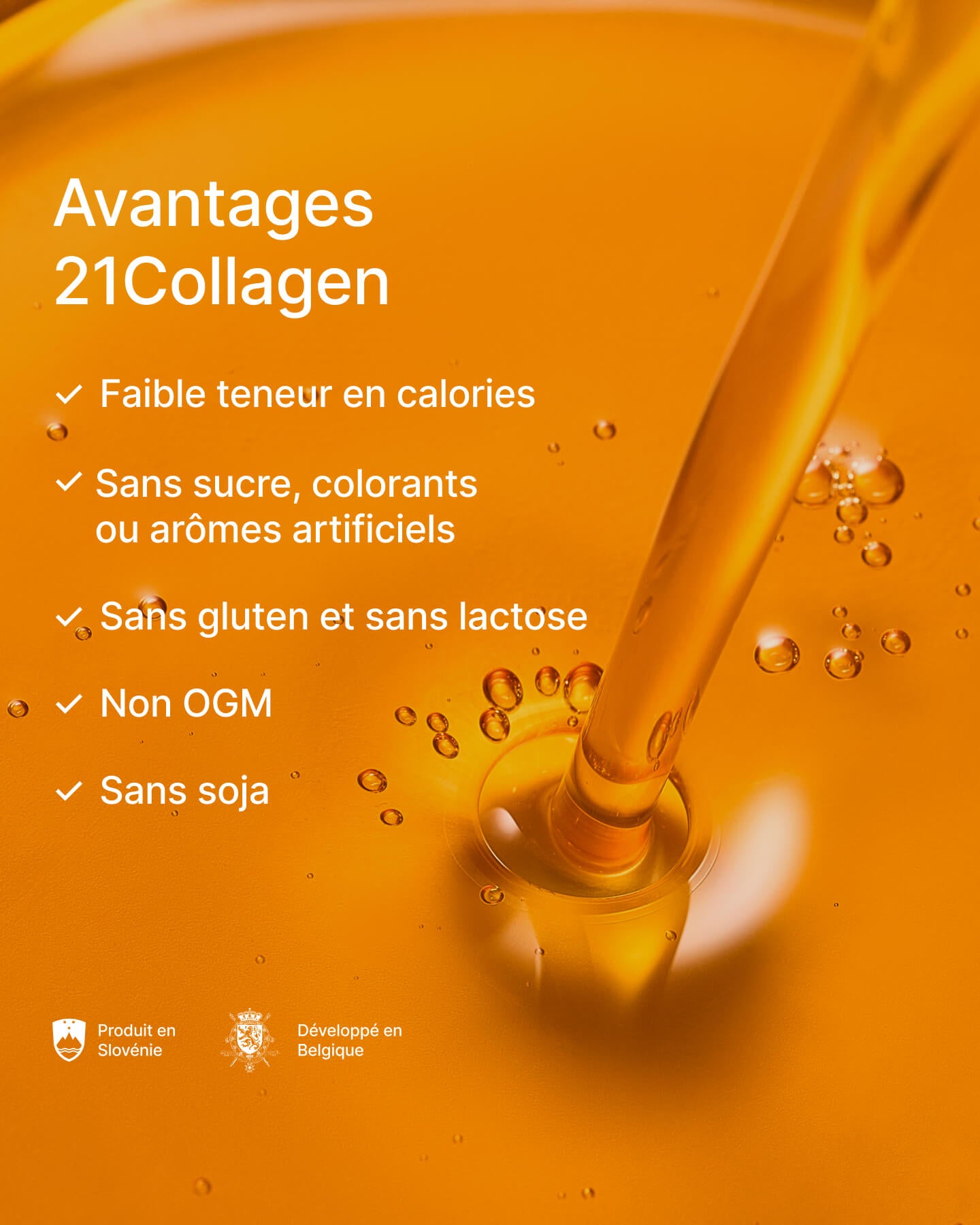 Ainsi, si vous recherchezLE MEILLEUR COLLAGÈNE SUR LE MARCHÉ, nous vous suggérons de vous arrêter sur 21Collagen Marin Liquide, formulé aveccollagène hydrolyséDE LA PLUS HAUTE QUALITÉ, ASSURANT UNE ABSORPTION RAPIDE ET DES BIENFAITS VISIBLES POUR LA PEAU, LES ARTICULATIONS ET LA SANTÉ GÉNÉRALE. AVEC UNE FORMULE UNIQUE ENRICHIE DE 21 INGRÉDIENTS ESSENTIELS, CE COMPLÉMENT REPRÉSENTE LA SOLUTION LA PLUS AVANCÉE POUR PRÉSERVER LA JEUNESSE ET LA MOBILITÉ.