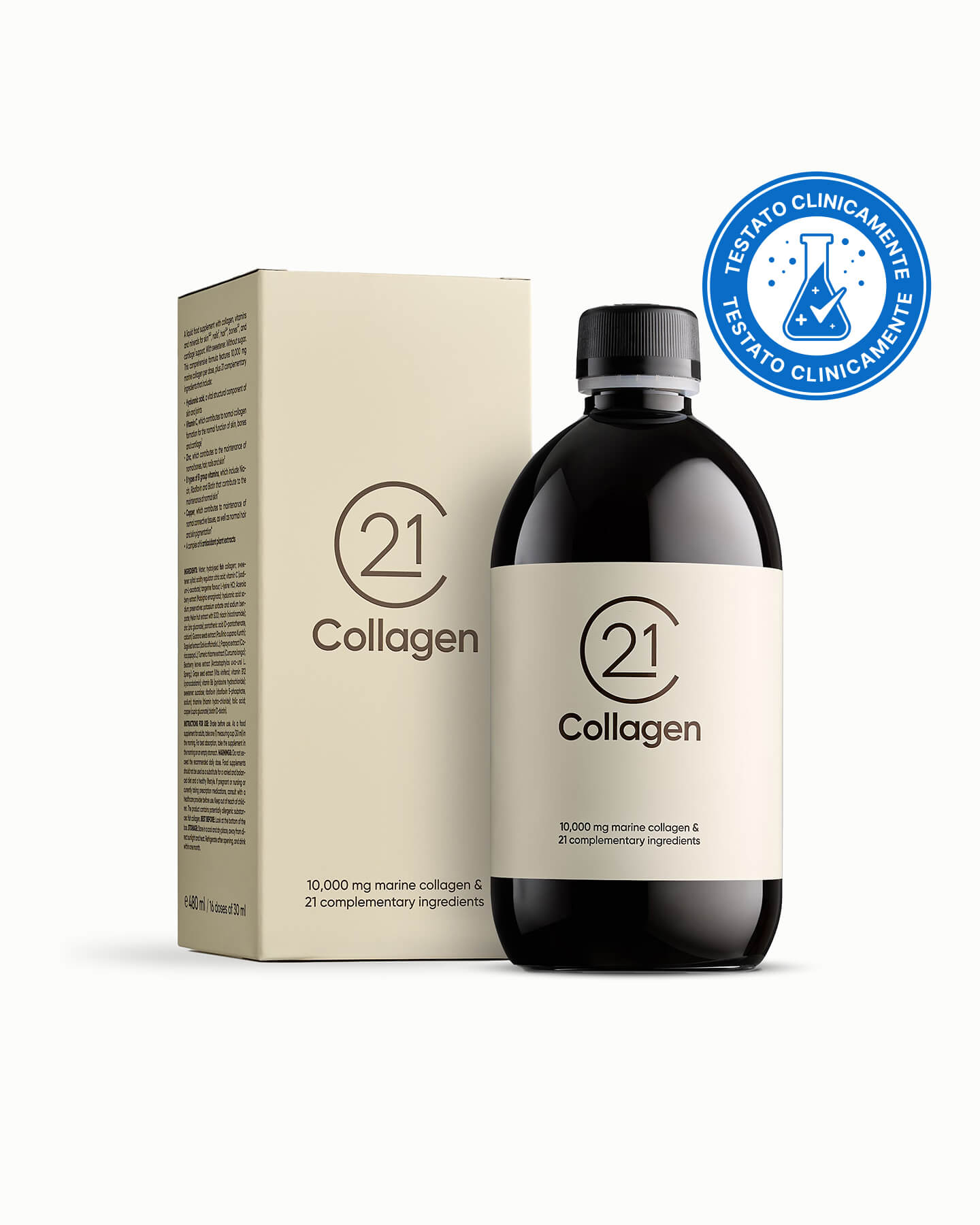 Collagene marinoIl liquido di 21Collagen contiene un'ampia lista di ingredienti della più alta qualità, tra cui peptide di collagene, acido ialuronico, vitamina C, vitamina B, zinco, ecc. Ogni ingrediente è stato sottoposto a studi condotti nei laboratori più prestigiosi del mondo, e sul sito ufficiale di 21Collagen, nella sezione "Studi", puoi trovare dettagli sugli effetti dimostrati di ciascun ingrediente presente nella formula di 21Collagen.