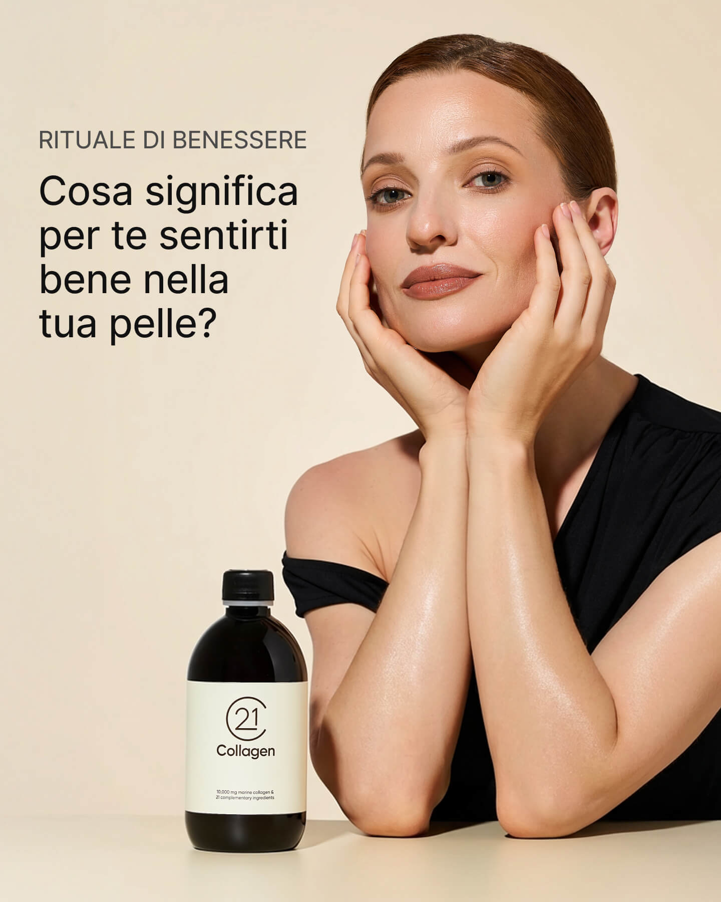Scopri 21Collagen— la formula completa che agisce dall’interno per una pelle più compatta, capelli più forti, unghie sane e articolazioni flessibili. Un solo gesto quotidiano per sostenere la tua bellezza, la tua vitalità e il tuo benessere dall’interno verso l’esterno. Scegli 21Collagene offri al tuo corpo il supporto che merita.