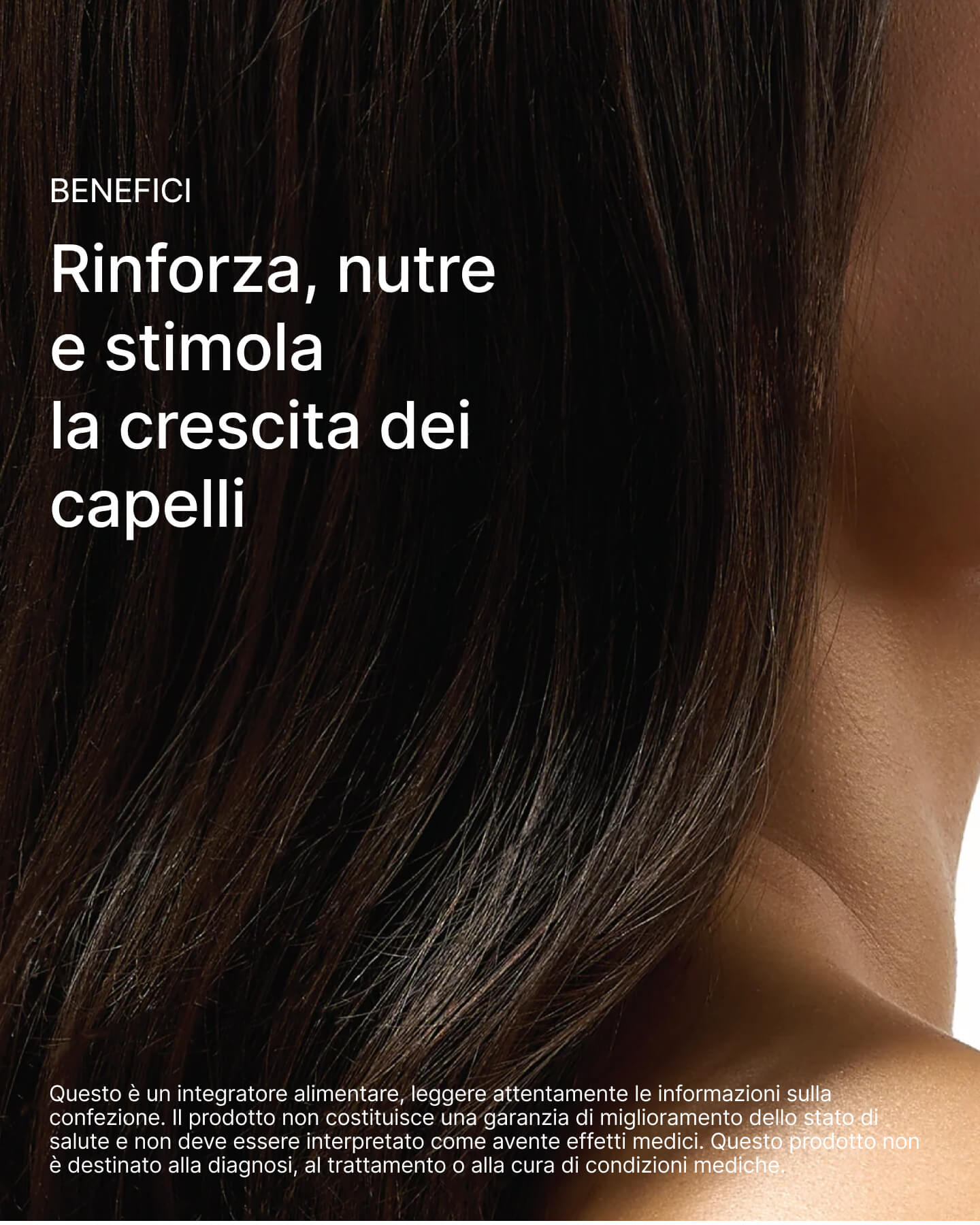 Il complesso di vitamine del gruppo B sostiene la crescita sana dei capelli, rendendoli più resistenti ai danni.