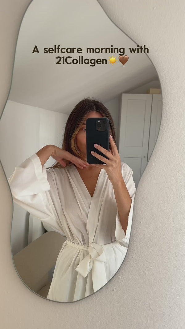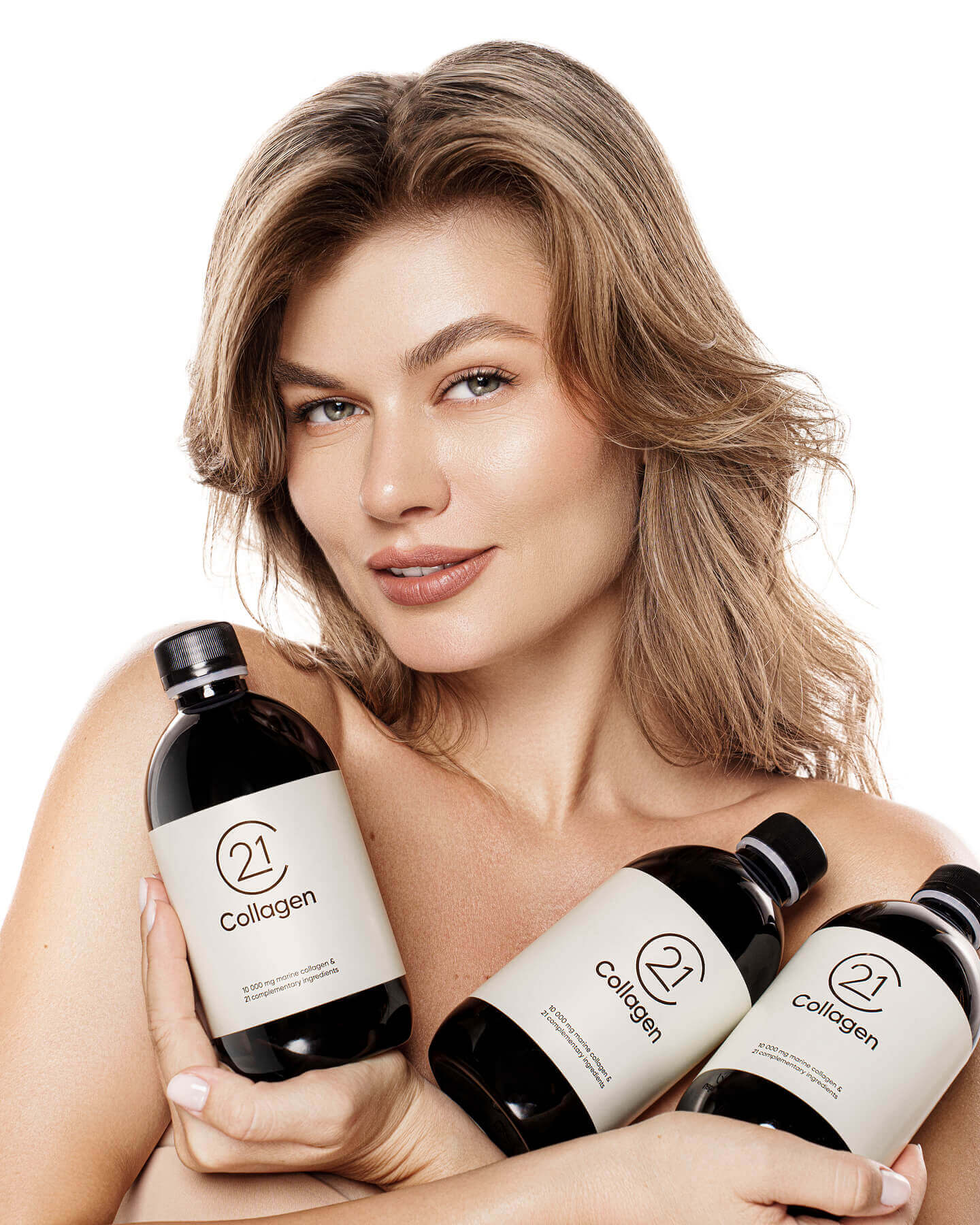 "Ho scoperto 21Collagen e mi è piaciuta l'idea di bellezza dall'interno verso l'esterno. Ho iniziato a usarlo di recente e mi ispira fiducia e una vera cura per la naturalità."